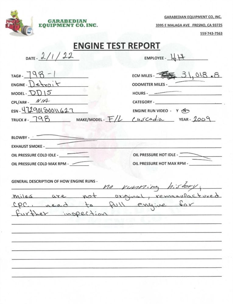 Core 2009 DETROIT DD15 Engine Assembly