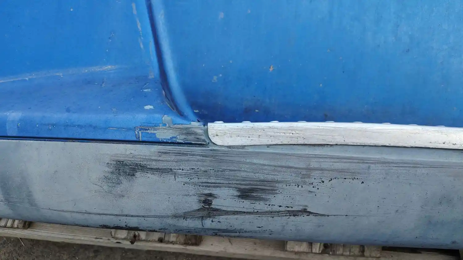 2007 Freightliner Columbia 120 Driver Side LH Fairing, 128" Total Length At Top Corners, Some Cracking/Chipping Along Bottom, Please See Pictures. P/N 22-42334-000, 22-51299-000.