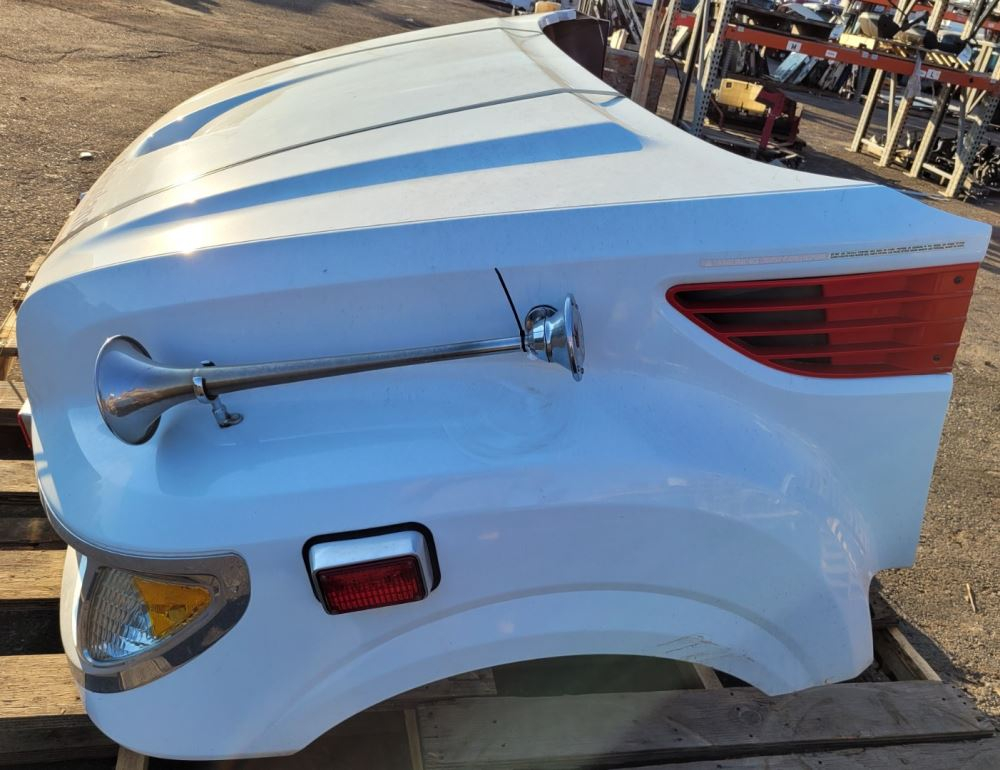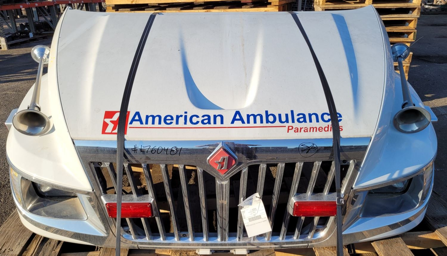 2013 International TerraStar Hood, 42"L, P/N 3877134C91, 3877134C93. Set Forward Axle, Lights And Horns; Good Reusable Condition.
