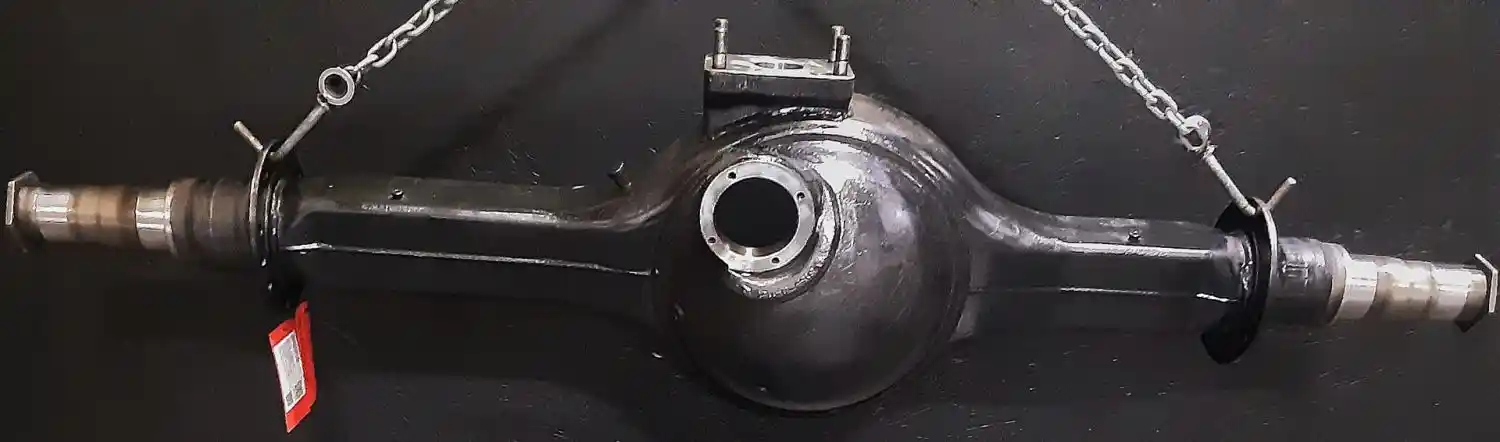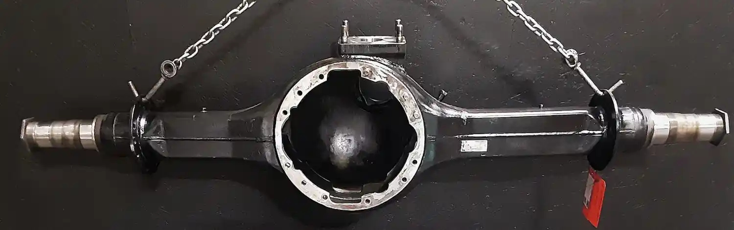 Refurbished Rockwell Front Rear Axle Housing, RDL20145, w/ Torque Rod Bracket, 53.5" Inner Flange to Inner Flange, 11 Hole Flange, STD Track. P/N C373121R2280, S/N AVA00065171. Removed From Volvo T-Ride Suspension.