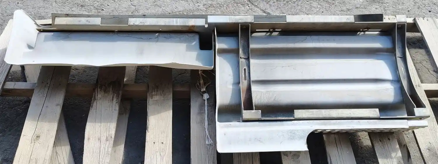 2008 Volvo VNM Driver Side Fairing; w/ Aluminum Steps; Small Crack On Smaller Fairing, Chipped Paint But In Fair Shape For Repair And Reuse.